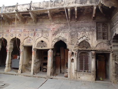 I went to Ramgarh which is only 7 km. from Mehansar to experience some of the illustrated houses. I was lucky that some owners let me get a little deeper into the private. The decorated buildings were created in the 18th and 19th century by rich Marvari merchants. It is especially the high 4 floors haveli's merchants let build.